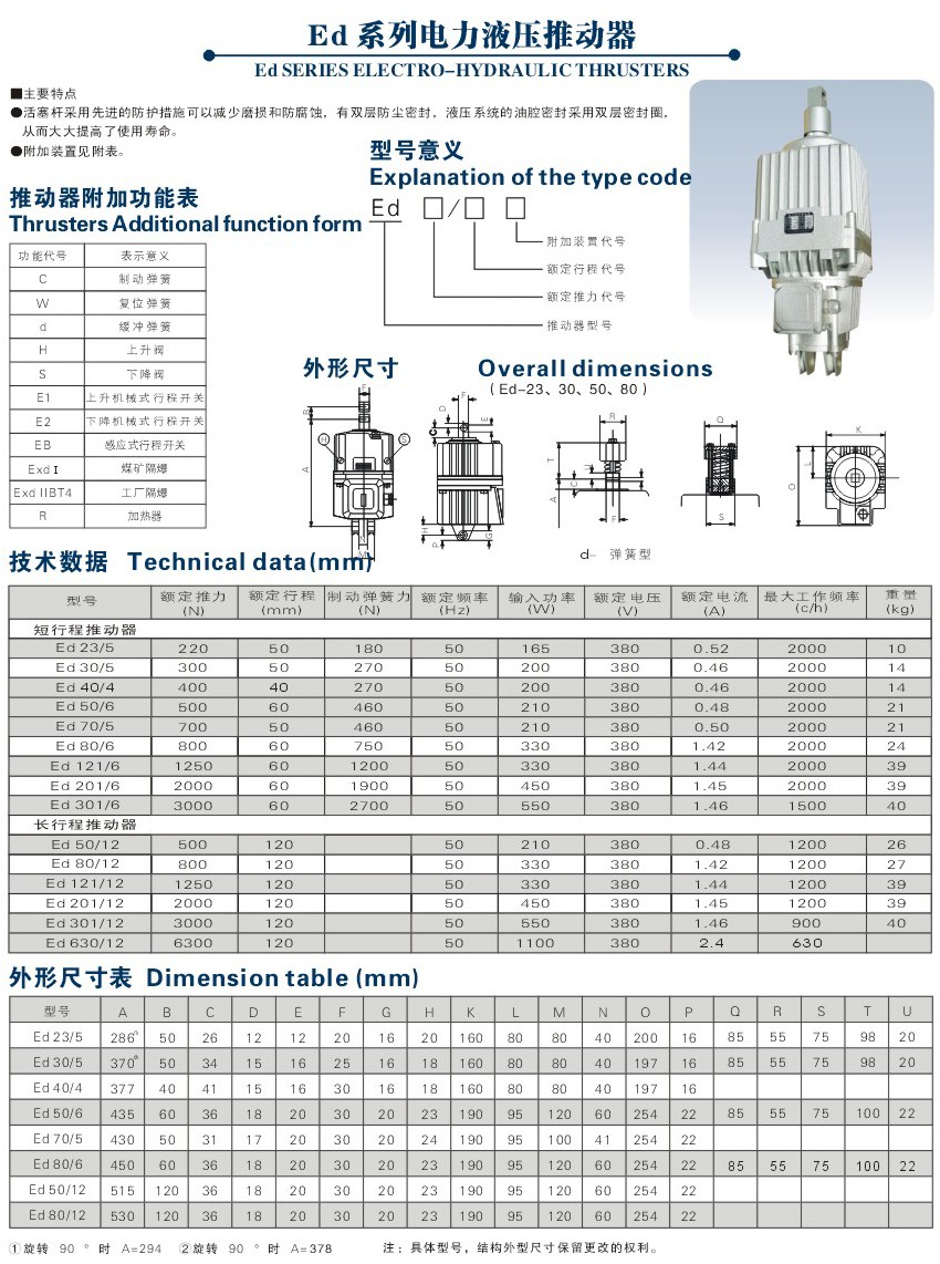 ED系列電力液壓推動器,適用于YWZ4,YWZ5,YWZ9等電力液壓制動器的工作驅(qū)動。